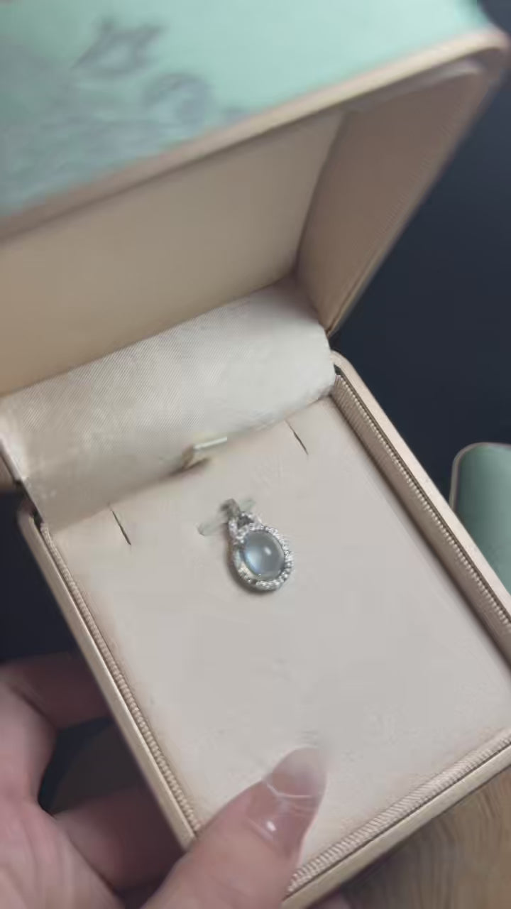 Radiant yet refined, this necklace features a softly luminous natural jade centerpiece framed by a delicate silver-toned setting. The gentle glow of the stone mirrors the calm warmth of dusk, while subtle crystal accents add a quiet brilliance that feels effortless and timeless.