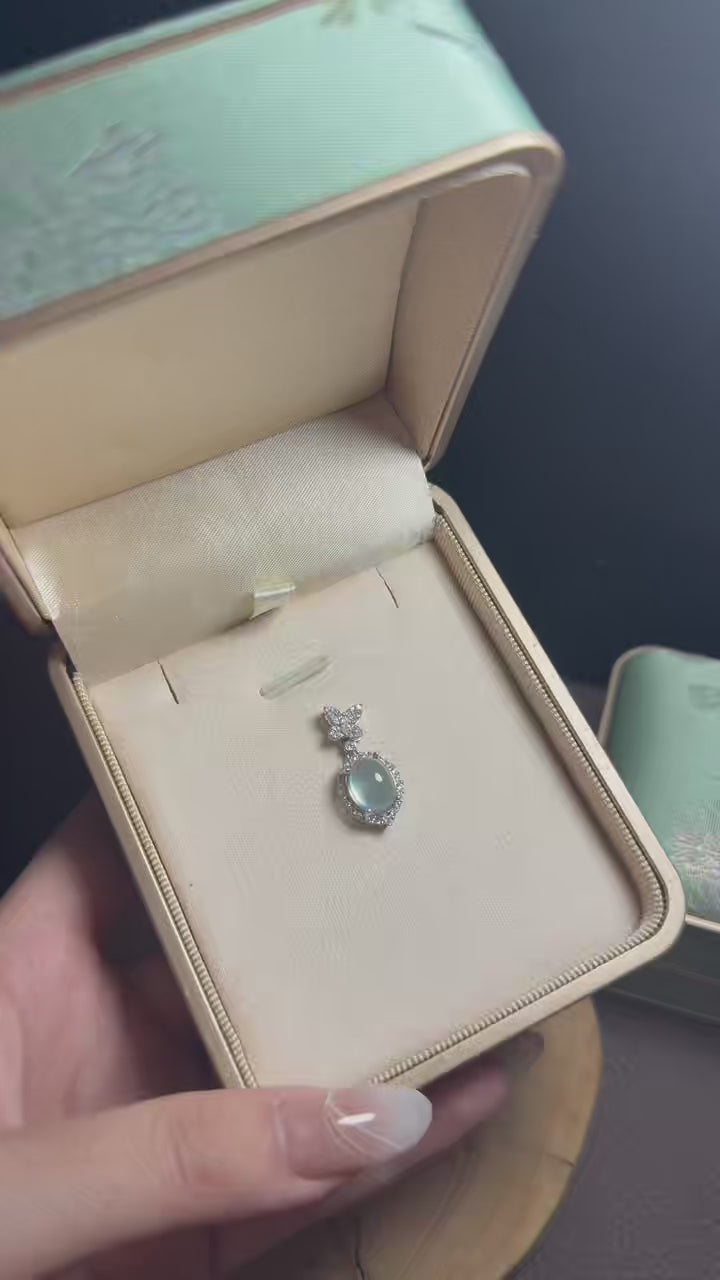 Elegant and timeless, this pearl-white necklace moves like a slow dance — graceful, eternal, and refined. The luminous center stone is framed by a sparkling halo and finished with a delicate butterfly detail, creating a soft statement that feels both romantic and modern.